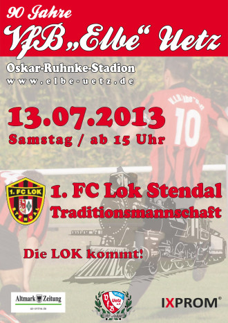 Als einer der Höhepunkte zu seinem Vereinsjubiläum präsentiert unser VfB die Fußball-Traditionsmannschaft des 1. FC Lok Stendal. Die Stendaler Fußballer rund um die DFB-Pokalhelden von 1995 treffen am 13. Juli auf eine besondere Auswahl Uetzer Fußballer.