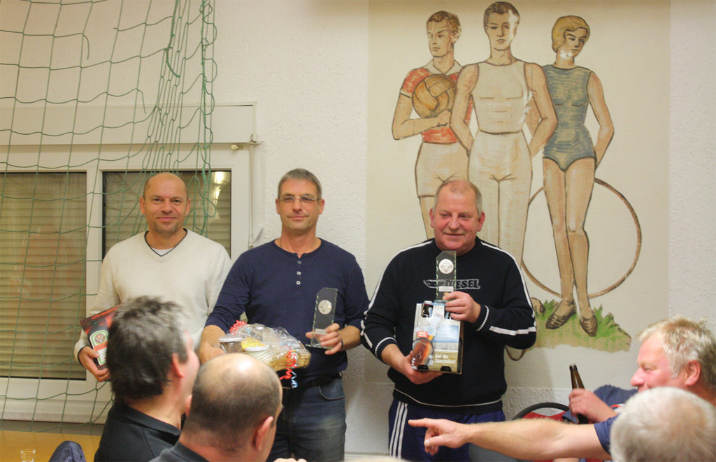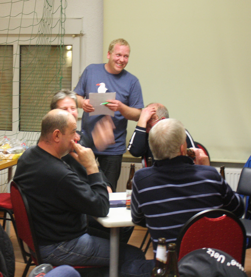 Olaf Siegemund heißt der verdiente Sieger des 9. Doppelkopf-Turnier des VfB „Elbe“ Uetz. Mit 235 Punkten verwies der Bertinger Jens Ruhnke (195) und Klaus Reichelt (130) auf die Plätze. Beim zeitgleich stattfindenden Rommé-Turnier konnte sich Alexander Brummer knapp vor Lucas Vogt durchsetzen. Den 3. Platz sicherte sich Willi Burkhardt. Insgesamt verbrachten knapp 30 Aktive und Zuschauer einen netten Abend im Vereinsheim auf dem Uetzer Sportplatz. Auch bei der 9. Auflage ging die Idee der Organisatoren Stephan Heinert und Christian Lust voll auf. Gleich 17 Doppelkopffreunde aus den umliegenden Orten waren der Einladung gefolgt. Und direkt nach der Auslosung der Spieltische nahm das leidenschaftliche „Kartenkloppen“ dann auch Fahrt auf. Etwa 4 Stunden später war nach zwei intensiven Spielrunden der letzte Stich gemacht und Stephan Heinert konnte unter großem Applaus die einzelnen Platzierungen verkünden. Wie immer gab es für jeden Teilnehmer lautstarken Beifall von den Anwesenden. Die besten drei durften sich zusätzlich über Pokale und tolle Sachpreise freuen. Dabei schaffte es der Cobbeler Klaus Reichelt als Dritter erstmals auf das Treppchen. Noch besser machte es Jens Ruhnke der sich mit 195 Punkten den Vizetitel sicherte. Umjubelter Sieger der 9. Auflage wurde am Ende Olaf Siegemund mit 235 Punkten. Der Bertinger trug sich damit als achter Spieler in die lange Siegerliste ein. Zwei Turniersiege gelangen bisher nur dem Tobias Mielke. Dieses Mal musste sich der Uetzer allerdings mit dem 16. Platz zufrieden geben. In etwas kleinerer Runde wurde die Rommé-Konkurrenz ausgetragen. Die neun Teilnehmer waren dennoch mit großem Ehrgeiz und nicht weniger Spaß bei der Sache. Am Ende triumphierte VfB-Kicker Alexander Brummer vor dem jüngsten Teilnehmer Lucas Vogt. Der nächste Doppelkopf- und Rommé-Abend ist im Frühjahr 2016 geplant. Für die dann 10. Auflage werden sich die Organisatoren sicher die eine oder andere Überraschung einfallen lassen. Wir freuen uns drauf.
