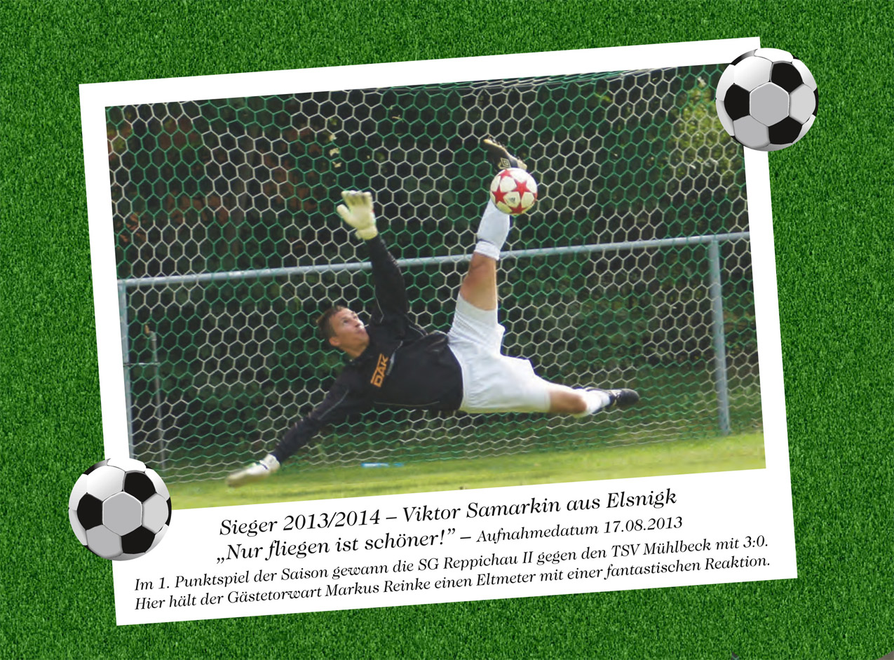 Ein toller Erfolg gelang unserem Verein beim landesweiten Wettbewerb „ZOOM – Amateurfoto der Saison 2013/2014“. Die beiden von Stefanie Vogt und Marco Lust eingesandten Beiträge zählten zu den Besten und wurden vor kurzem vom Fußballverband Sachsen-Anhalt prämiert.