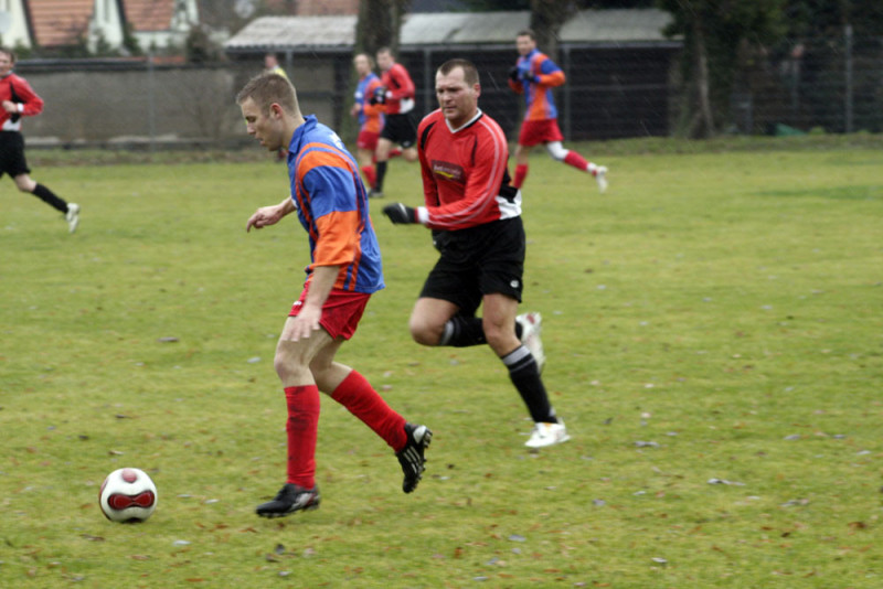 Unsere Elf wollte sich unbedingt mit einem Heimsieg bei den eigenen Fans bedanken. Der schwungvolle Beginn brachte auch früh die erste gute Gelegenheit. Ronny Pfeiffer hatte in Strafraumnähe einen Stendaler Fehlpass erahnt und den Ball schön auf David Mielke durchgesteckt, doch unser Kapitän verzog mit seiner „linken Klebe“ deutlich. Wenig später zeigten dann auch die Gäste das erste Mal Offensivgeist. Nico Wiegel spielte steil auf Alexander Weber, der kam aber zu spät gegen den aufmerksamen Nigel Kempchen im VfB-Tor. Kurz darauf fing der starke Michael Woop einen BSC-Einwurf ab, Ronny Pfeiffer schalte schnell, doch sein Steilpass wurde zur Ecke geklärt. Eine Sache für Stefan Schmilas, doch sein Eckball war etwas zu lang, so dass Torsten Lotsch trotz seiner 2,02m nicht genug Druck hinter seinen Kopfball bekam. Unsere Elf tat sich in der Folge schwerer. Zahlreiche Fehlpässe und eine gut organisierte BSC-Defensive verhinderten einen flüssigen Spielaufbau. Und die Gäste deuteten immer öfter an, warum sie die zweitbeste Rückrunden-Elf sind. Mit weiten Diagonalbällen rissen sie ein ums andere Mal die VfB-Abwehr auseinander und kamen so gefährlich in Strafraumnähe. So auch nach knapp 20 Spielminuten. Im Anschluss an eine VfB-Ecke starteten die Gäste den nächsten Gegenangriff. Nach zwei herrlichen Flankenwechseln hatte Patrick Dehne am linken Flügel reichlich Platz und zog von der Strafraumkante mutig ab. Sein satter Linksschuss strich aber knapp am rechten Torpfosten vorbei. Das Spiel war nicht hochklassig, bot aber Tormöglichkeiten auf beiden Seiten. Die nächste bekam unser Torjäger Christian Lust. Einen Matterne-Freistoß legte David Mielke per Kopf ab und Christian versuchte es direkt aus der Drehung aber BSC-Keeper Wittrien parierte zur Ecke. Nach einer umstrittenen Freistoßentscheidung, Michael Woop sprang beim Kopfballduell einfach höher als sein Gegenspieler, kamen die Gäste zu ihrem nächsten Torschuss. Aber im Nachfassen konnte Nigel Kempchen den direkten Versuch entschärfen. Kurz darauf war dann wieder unsere Elf am Zug. Nach schöner Vorarbeit von Pfeiffer, flankte Kroll auf Lust, der legte ab auf Schmilas, dessen Querschläger landete wieder auf der anderen Seite, wo Kroll das Leder neben das Tor setzte. In der Schlussoffensive der ersten Hälfte kamen dann beide Teams noch einmal zum Abschluss. Erst scheiterte Weber nach einem BSC-Einwurf an Kempchen und wenig später prallten direkt nacheinander die Schussversuche von Stefan Schmilas, Christian Lust und Christian Kroll von der BSC-Abwehr ab.