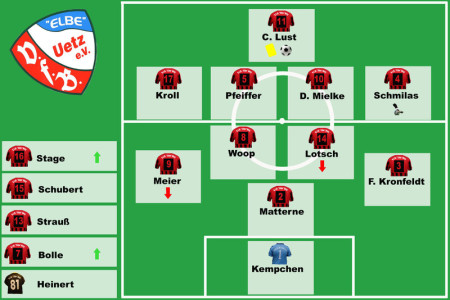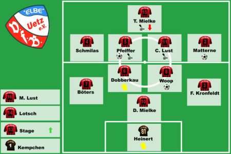 Die Männer vom Bierkeller sind die Elf der Stunde. Nach ihrer mäßigen Hinrunde (15 Punkte) stellen sie aktuell mit 32 Punkten das zweitbeste Team der Rückserie. Lediglich beim Aufsteiger Havelwinkel Warnau am 22. Spieltag gingen die Müller-Jungs als Verlierer vom Platz. Zuletzt folgten 6 Spiele ohne Niederlage. Mit entsprechend breiter Brust kommen die Wiegel und Co. nun auch nach Uetz. Bei nur noch 3 Punkten Rückstand winkt sogar noch ein Platz unter den Top-5 der Kreisoberliga. Unsere Elf ist ihrerseits auf Wiedergutmachung aus. Nach dem unnötigen Punktverlust gegen Kamern soll am Samstag wieder ein Dreier eingefahren werden. Bis auf den gesperrten Pierre Dobberkau stehen dabei alle Spieler zur Verfügung.
