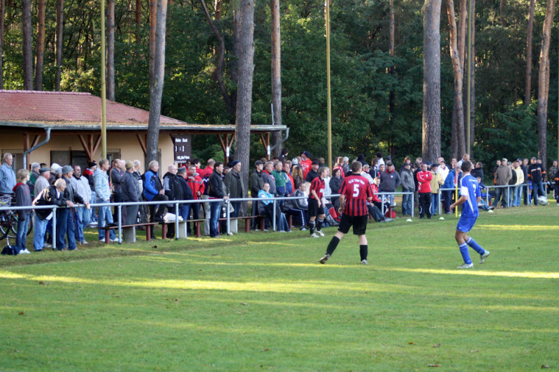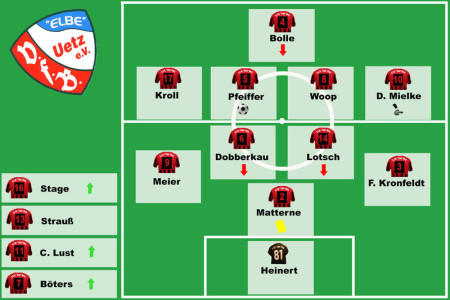 Am Samstag musste unsere Mannschaft gegen den SV Grieben eine herbe 1:4 Niederlage hinnehmen. Vor rund 160 Zuschauern riss damit die Erfolgsserie nach zuletzt fünf Siegen ausgerechnet im Derby. Nach 25 Siegen und 4 Unentscheiden war es gleichzeitig die erste Heimniederlage seit dem 12. September 2009. Neben dem langzeitverletzten Torsten Bruns stand auch Pierre Dobberkau mit einer Fußverletzung aus dem Schönhausen-Spiel nicht zur Verfügung. Trotz dieser Schwächung kam unsere Elf gut in die Partie und war zu Beginn das aktivere Team. Die ersten Tormöglichkeiten gab es dann nach Freistößen. Erst scheiterte Stefan Schmilas mit seinem direkten Versuch. Wenig später jagte Rudi Matterne den Ball nach einem Mielke-Freistoß und anschließender Ablage von Christian Lust über das Tor. Die Gäste kamen nur langsam in die Partie und tauchten nach einer knappen Viertelstunde das erste Mal gefährlich in Strafraumnähe auf. Nach einem Konter über die recht Seite grätschte Marcel Böters zentral vor dem Sechzehner Ball und Gegner weg und Schiedsrichter Jensen entschied auf Freistoß. Tobias Hochmuth nahm Maß und jagte das Leder an der Mauer vorbei ins rechte untere Toreck. Die Antwort unserer Mannschaft ließ nicht lange auf sich warten. Der eingewechselte Christian Kroll flankte von links und Robert Bolle war zur Stelle, traf aber nur den Pfosten. Wenig später wurde Christian Lust von Marcel Böters frei gespielt, scheiterte aber mit seinem Schuss am guten SVG-Keeper Eckardt. Der Torhüter stand wenig später erneut im Mittelpunkt, als er einen stark getretenen Schmilas-Freistoß sehenswert entschärfte. Unsere Mannschaft war auch nach dem Gegentor spielbestimmend, mehr als ein Abseitstor von Michael Woop sprang aber nicht heraus. Erst in der Schlussphase der ersten Halbzeit erspielten sich unsere Jungs dann die nächsten Tormöglichkeiten aber Robert Bolle und Rudi Matterne scheiterten mit ihren Schüssen. Kurz vor dem Pausenpfiff dann der nächste Schock. Bei einem Griebener Konter rutschte der aus dem Tor geeilte Nigel Kempchen am Ball vorbei und Nino Witte nahm das Geschenk an und schob zum 2:0 ein. Unglaublich, die Gäste hatten bis dahin nicht eine richtige Tormöglichkeit und lagen dennoch mit zwei Treffern vorn. Der zweite Durchgang begann wie der erste aufgehört hatte. Unsere Mannschaft hatte mehr vom Spiel, die Gäste beschränkten sich auf die Defensive und gelegentliche Konterangriffe. Torchancen blieben weiterhin Mangelware, dafür nahmen die Zweikämpfe deutlich zu. Nach einer Kroll-Flanke legte Christian Lust für Ronny Pfeiffer ab, dessen Schussversuch war aber nicht mehr als eine Rückgabe zum Torhüter. Nach einer guten Stunde kam dann der angeschlagenen Torjäger Carsten Horn bei den blau-weißen ins Spiel. Und kaum auf dem Platz leitete der Angreifer die erste Griebener Großchance ein. Sein Pass landete mustergültig bei Nino Witte der die Kugel allerdings über das Tor setzte. Wenig später musste dann der Griebener Schlussmann wieder eingreifen. Bei einer Matterne-Flanke war Eckardt einen Schritt vor Christian Lust am Ball. Mit zunehmender Spieldauer versuchte es unsere Elf dann immer öfter mit langen Bällen, kam aber so nur selten gefährlich in Tornähe. Die wenigen Angriffe der Gäste waren dagegen brandgefährlich. Wieder spielte Horn Stürmer Witte frei, der versuchte es dieses Mal gekonnt mit einem weiten Heber aber Nigel Kempchen kratzte im letzten Moment das Leder noch über die Querlatte. Zehn Minuten vor dem Ende dann die Entscheidung: Wieder ein Freistoß in zentraler Position, wieder fasste sich Hochmuth ein Herz und wieder zappelte der Ball im Uetzer Tornetz. Trotz dieses weiteren Nackenschlages warf unsere Elf noch einmal alles nach vorne und kam wenig später zum Anschlusstreffer. Eine weite Pfeiffer-Flanke fand Stefan Schmilas am langen Pfosten, der Linksfuß legte den Ball am Torhüter vorbei und Kapitän David Mielke drückte das Leder im zweiten Versuch über die Linie. Doch dieses Erfolgserlebnis kam viel zu spät. Die Gäste ließen in den restlichen Minuten keine Torchance mehr zu und machten in der Schlussminute sogar noch das 4:1. Nach einem Solo über die linke Außenbahn schlug Martin Albrecht die Kugel scharf in den Torraum und der aufgerückte Steffen Kessler grätschte den Ball ins Tor und setzte damit den Schlusspunkt hinter das erste Derby dieser Saison. Die Gäste bejubelten nach dem Schlusspfiff ausgelassen ihren sechsten Saisonsieg. Sie waren in einer sehr fairen Partie zwar nicht das bessere Team, aber auf Grund der gnadenlosen Effektivität vor dem Tor ein verdienter Sieger. Durch diesen Erfolg kletterte der SVG mit nun 19 Punkten auf Rang 3, unsere Mannschaft verteidigte trotz der Niederlage den fünften Platz. Nach dem Derby erwartet unsere Elf am nächsten Samstag mit Medizin Uchtspringe den Spitzenreiter der Kreisoberliga im Oskar-Ruhnke-Stadion.