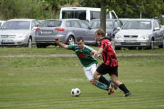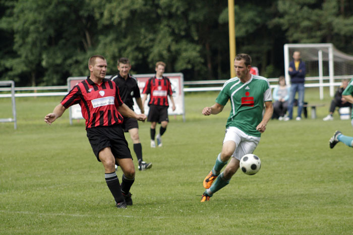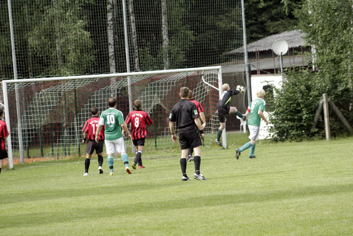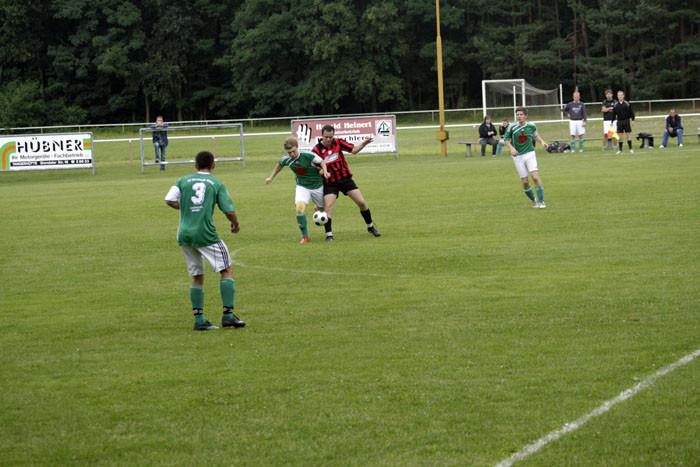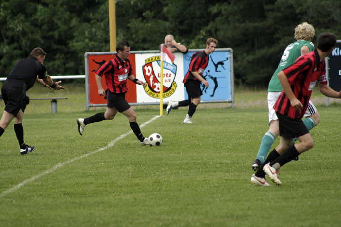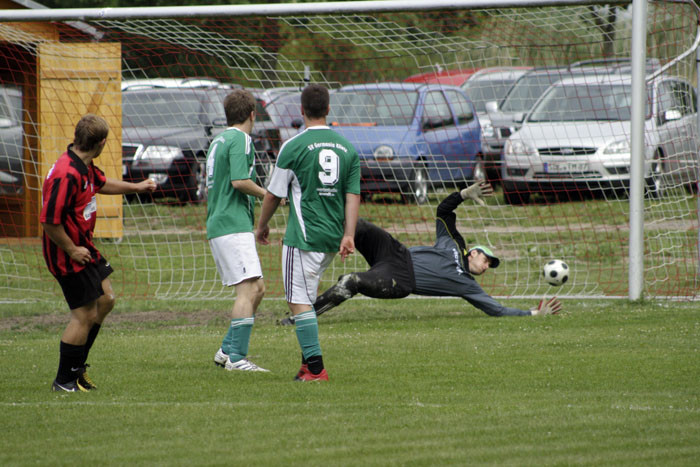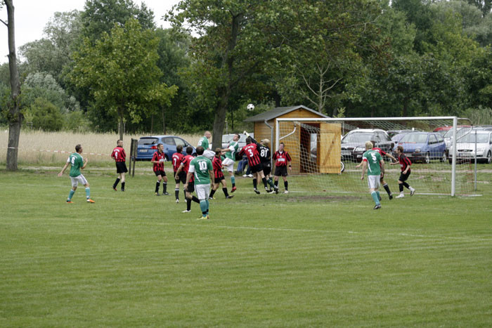 Trotz Personalsorgen wollte unser Team unbedingt etwas Zählbares vom Osterausflug mitnehmen. Doch auf dem Platz war davon recht wenig zu sehen. Die Germanen, die zuletzt sechs Niederlagen in Folge hinnehmen mussten, bestimmten vom Anpfiff an das Spielgeschehen und kamen schon früh zu ersten Strafraumszenen. Unsere Männer kamen dagegen überhaupt nicht ins Spiel. Ein harmloser Schussversuch von David Mielke war das einzige Lebenszeichen in den ersten zehn Spielminuten. Die Hausherren präsentierten sich dagegen aggressiv und hungrig. Immer einen Schritt schneller eroberten sie sich die Bälle und spielten dann blitzschnell nach vorne. Der Lohn für diese engagierte Anfangsphase war eine frühe 2:0 Führung. Erst eroberten sich die Klietzer nach einem VfB-Einwurf das Leder, schalteten sofort um, Liermann ließ Libero Rudi Matterne alt aussehen und brachte seine Farben in Führung. Kurz darauf ließ Linksaußen Kroll seinem Gegenspieler zu viel Platz, der tanzte an der Außenlinie Böters und Kroll aus, flankte in den Strafraum wo Tobias Koch zum 2:0 vollendete. Und auch das 3:0 ging auf das Konto des Germania-Kapitäns. Wieder hatte sich Blümner auf dem Flügel durchgesetzt und erneut fand seine Flanke Tobias Koch, der dieses mal mit dem Kopf zur Stelle war. Die beste Gelegenheit für unsere Elf hatte der für Robert Bolle eingewechselte Marco Lust. Nach feiner Vorarbeit von Bruder Christian, zögerte er jedoch zu lange und Libero Stamer konnte den Schuss noch abblocken. Zu diesem Zeitpunkt hätte unsere Mannschaft aber auch schon 5:0 oder 6:0 zurück liegen können. Klietz spielte wie aufgezogen, besonders die bärenstarken Blümner und Koch waren nicht zu bremsen. Mittelfeldmann Patrik Blümner setzte dann auch den Schlusspunkt im ersten Durchgang. Einen abgewehrten Ball nahm er direkt und jagte die Kugel aus knapp 30 Metern an den linken Torpfosten. Zu Beginn der zweiten Spielhälfte hatte dann unser Team seine beste Phase. Im Anschluss an einen Eckball besorgte Christian Lust per Nachschuss das 1:3 und nur 6 Minuten später gelang Ronny Pfeiffer der Anschlusstreffer. Dabei half allerdings Ersatzkeeper Reinfeldt ordentlich mit, indem er den als Flanke gedachten Torschuss durch die Hände rutschen ließ. Damit war unsere Mannschaft wieder im Spiel. Die Gastgeber wackelten allerdings nur kurz. Bei einem weiten Ball in den VfB-Strafraum machten erst Libero Matterne und dann auch Torhüter Heinert keine gute Figur und Torjäger Koch schlug erneut zu. Von diesem erneuten Rückschlag erholte sich unsere dann nicht mehr. Fast ohne Gegenwehr kamen die Germanen zu einer Tormöglichkeit nach der anderen. Völker und Zander erhöhten auf 6:2, ehe erneut Tobias Koch per Direktabnahme zum 7:2 einnetzte. Nur selten konnten unsere Kicker durch eigene Offensivaktionen Entlastung schaffen. Das 3:7 durch David Mielke war am Ende nicht mehr als Ergebniskosmetik. Den Schlusspunkt setzte der überragende Mann an diesem Nachmittag: Tobias Koch köpfte nach einer Blümner-Ecke zum Endstand ein.