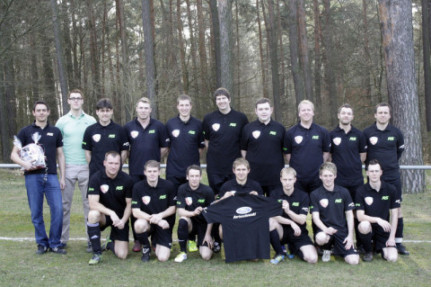 Als Lohn für die sehr erfolgreiche Hinrunde wurden die Shirts bereits auf der letzten Weihnachtsfeier präsentiert. Die offizielle Übergabe erfolgte nun mit Beginn der warmen Jahreszeit. Als Stellvertreter der Firma waren zu diesem Termin auch die Brüder Frank und Michael Bartoschewski anwesend. Beide sind in ihren Berufen als Diplom-Betriebswirt bzw. als Kfz-Meister im Uchtdorfer Familienunternehmen tätig.