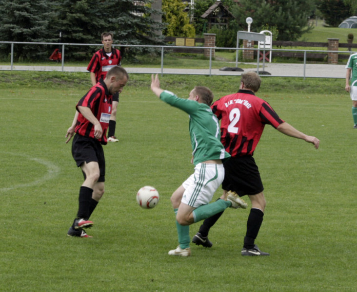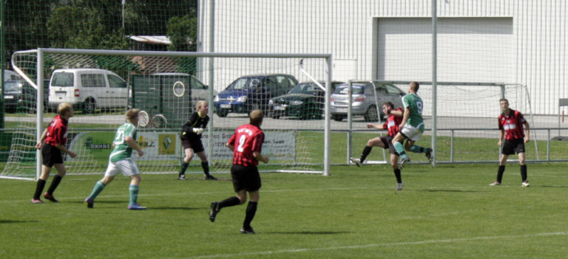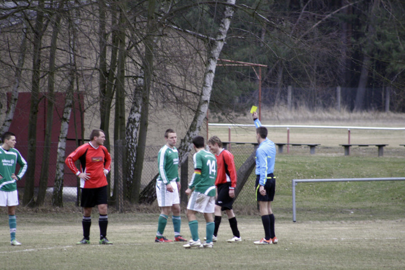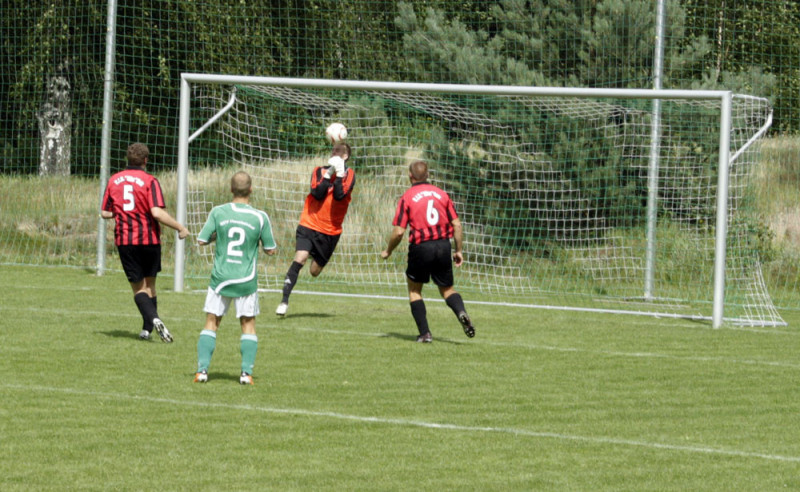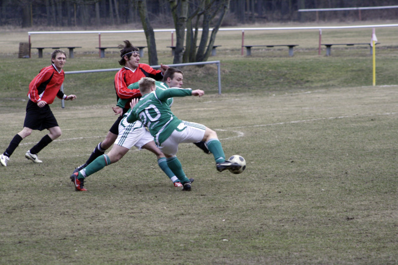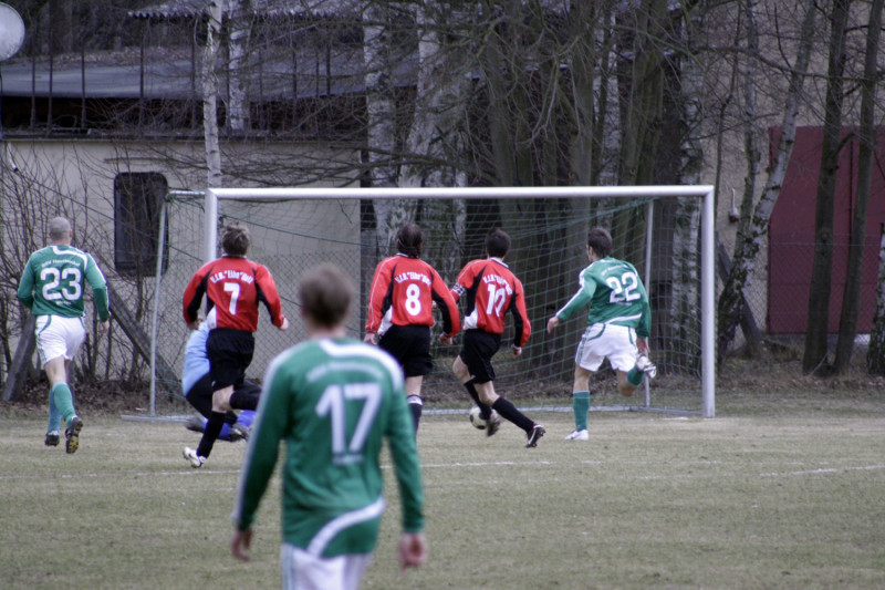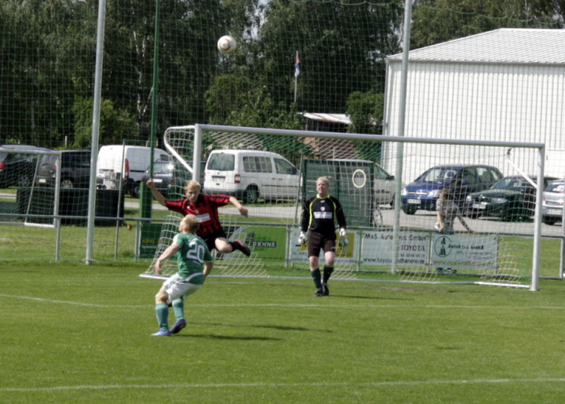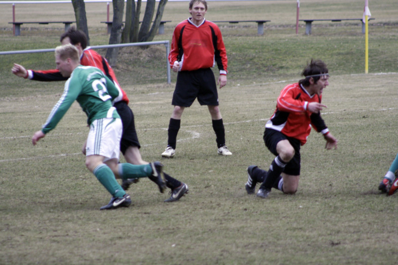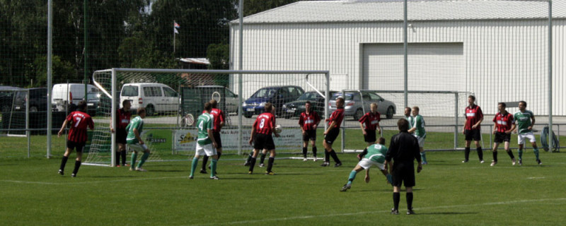 Enttäuschend wie das Ergebnis war auch die Personalsituation vor dem Spiel. Von den 19 Spielern die noch vor einer Woche die Kabine füllten, standen zum Spitzenspiel gegen den Tabellenzweiten lediglich 10 Feldspieler und unsere beiden Torhüter zur Verfügung. Die Anfangsformation stellte sich damit allein durch Anwesenheit auf. Dennoch gingen unsere Jungs mutig in die Partie und hatten nach wenigen Augenblicken die erste dicke Tormöglichkeit. Robert Bolle hatte genau auf Christian Lust geflankt, aber unser Angreifer platzierte seinen Kopfball nicht genau genug. Noch knapper war es in der 10. Spielminute. Fast artistisch nahm Stefan Schmilas einen hohen Ball direkt, als Heber flog das Spielgerät über SSV-Torhüter Heinz, klatschte aber nur gegen die Torlatte. Eigentlich aus dem Nichts dann die Gästeführung. Und nicht nur das überraschende Tor sondern auch die Entstehung erinnerte stark an das Havelbergspiel. Wie in der Vorwoche war es ein Freistoß nach einem Foul von Christian Kroll in Strafraumnähe der zum Treffer führte. Der Freistoß schlug zwar in der VfB-Mauer ein, den Nachschuss setzte dann aber Danny Meier unhaltbar in die linke Torecke. Trotz des Rückstandes hatte unsere Elf mehr vom Spiel. Taktisch diszipliniert und mit hoher Einsatzbereitschaft wurde das Kombinationsspiel der Gäste immer wieder unterbunden. Dazu waren Spielmacher Schultz und Torjäger Betker bei Michael Woop und Florian Kronfeldt in guten Händen. Mitte der ersten Spielhälfte dann die nächsten Aufreger im Warnauer Strafraum. Erst spielte SSV-Kapitän Gerngroß den Ball mit dem Oberarm, Schiri Baron ließ weiterspielen, dann erwischte Michael Woop eine Lustflanke nicht perfekt und setzte den Seitfallzieher nur neben das Tor. Auch Freistöße brachten an diesem Nachmittag nicht den gewünschten Erfolg. Zwar waren Stefan Schmilas direkte Versuche aus halbrechter Position stark getreten, aber erst konnte Heinz parieren und wenig später landete die Kugel haarscharf neben dem Torpfosten. Die letzte Chance vor der Pause hatte dann Ronny Pfeiffer. Mit einem feinen Pass brachte er selbst Christian Kroll auf der linken Außenbahn ins Spiel. Dessen Flanke landete bei Stefan Schmilas der aber über den Ball trat, so dass das Leder über Umwege wieder bei Ronny landete, der aber aus 18 Metern deutlich verzog.