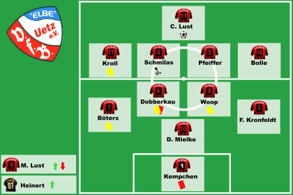 Kempchen - D. Mielke, Dobberkau, Woop, Böters, F. Kronfeldt - Kroll, Schmilas, Pfeiffer, Bolle (71. M. Lust, 80. Heinert)