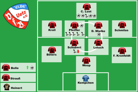 Anstelle des erhofften Offensiv-Feuerwerks bekam das Uetzer Publikum also nur einen glanzlosen Pflichtsieg geboten. Aber auch solche Siege bringen bekanntlich 3 Punkte und so kletterte unsere Elf wieder auf Rang 4 der Tabelle. Da unter der Woche auch die Kamern-Partie mit 3:0 für unseren VfB gewertet wurde, wuchs das Punktekonto auf beachtliche 29 Zähler. Vor der abschließenden Hinrundenpartie gegen Eintracht Walsleben ist unserer Elf, bei 5 Punkten Vorsprung auf den SV Grieben, der 4. Platz nicht mehr zu nehmen.
