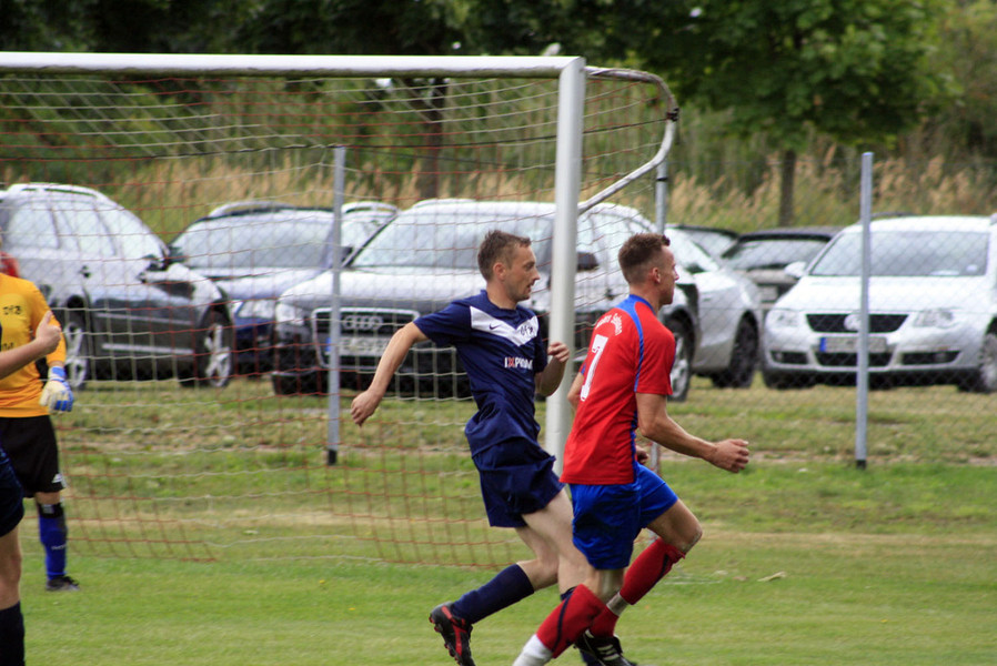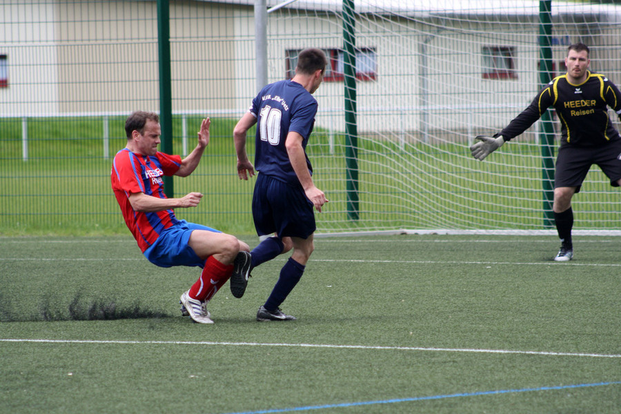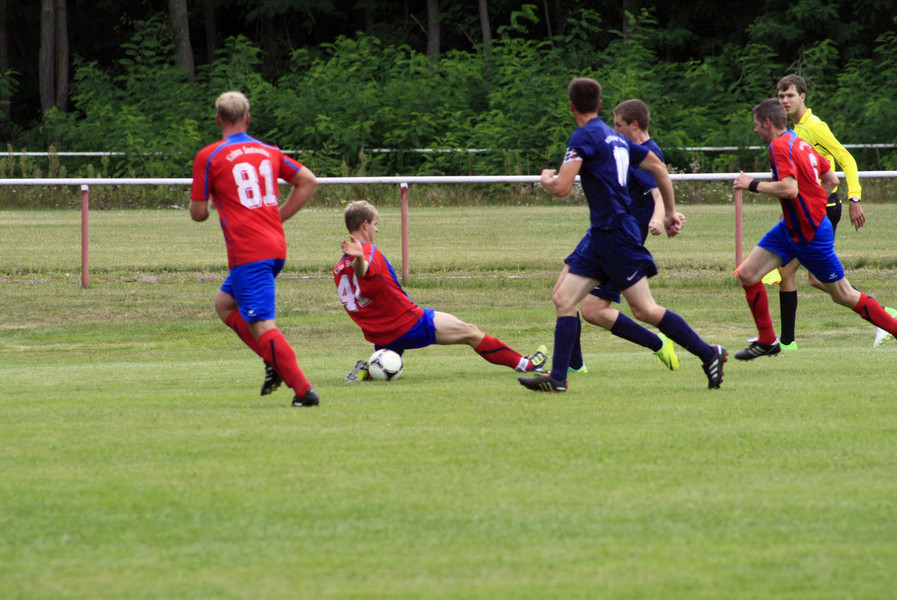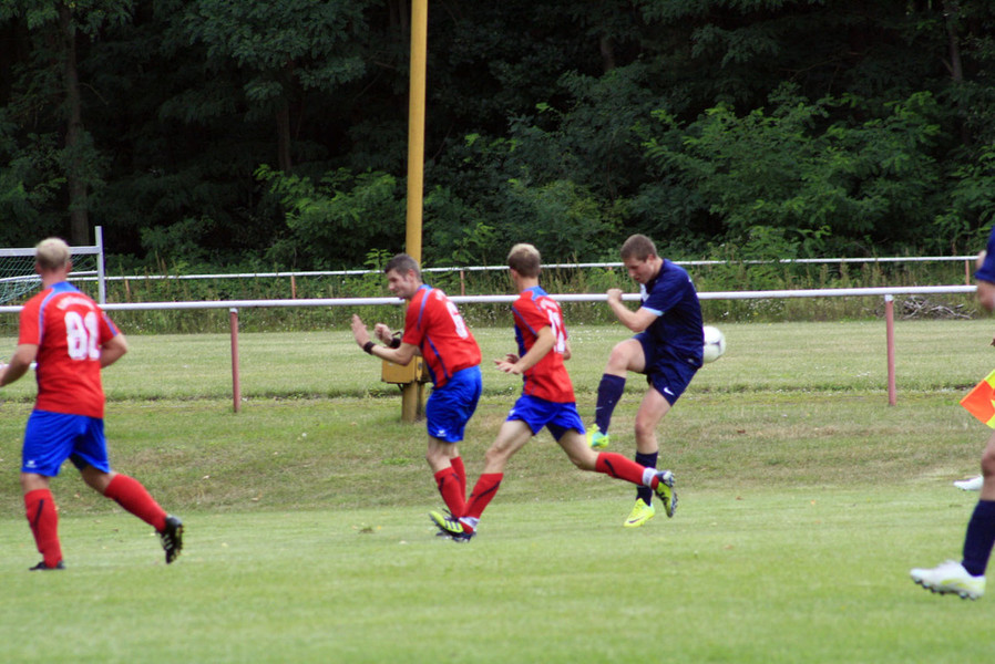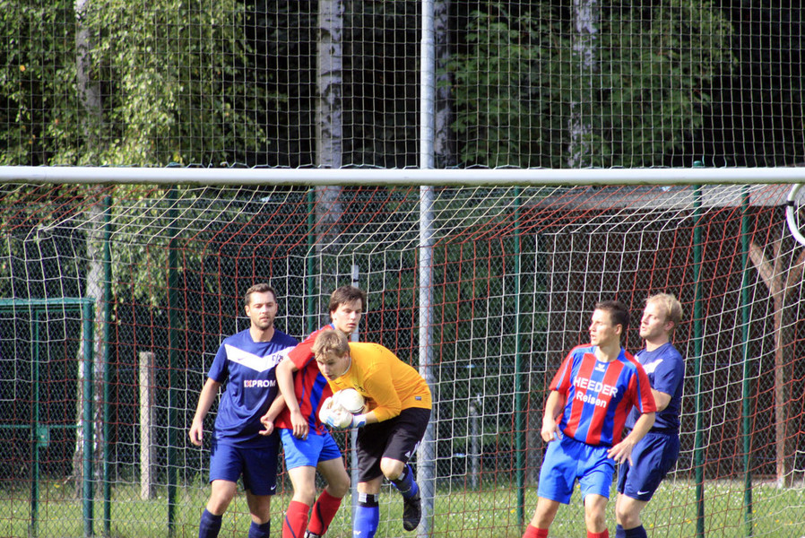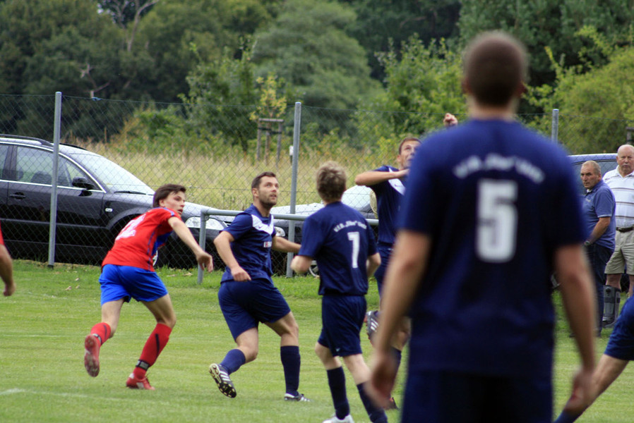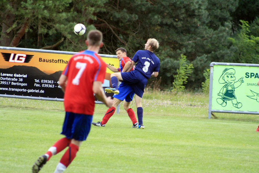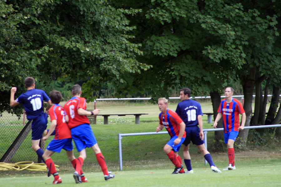 Bis dahin hatte unsere Mannschaft außer einem Flankenlauf von David Mielke und zwei harmloser Pfeiffer-Freistöße nichts vorzuweisen. Die erste gefährliche Offensivaktion leitete dann Torhüter Nigel Kempchen ein. Mit einem schnellen Abwurf brachte er David Mielke ins Spiel, der legte nach feinem Doppelpass mit Christian Lust zurück auf Ronny Pfeiffer, doch dessen Schuss strich knapp am Gehäuse vorbei. Jetzt nahm die Partie Fahrt auf, denn fast im Gegenzug hatten die Platzherren die Führung auf dem Fuß. Wieder prüfte Nowak Kempchen und nur mit Mühe konnte unsere Hintermannschaft zur Ecke klären. In dieser Phase hatte Seehausen die deutlich besseren Offensivaktionen. Nach einem Konter jagte Rosin das Leder über den rechten Torwinkel und auch bei einem Nowak-Freistoß landete der Nachschuss nur neben dem Tor.