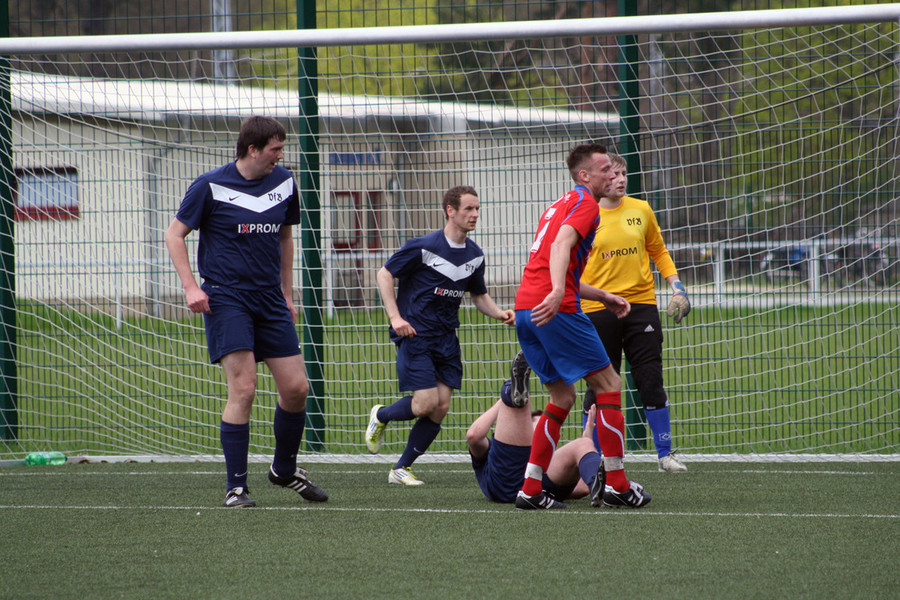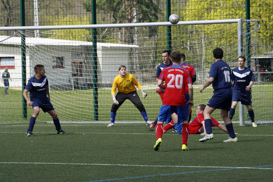 Auf dem extrem kleinen Kunstrasenplatz tat sich unsere Elf lange sehr schwer. Die Gastgeber begannen druckvoll und kamen nach einem Einwurf zur ersten Torchance. Zwar konnte der Versuch vom agilen Nowak abgewehrt werden aber beim Nachschuss von Buresch musste Kempchen parieren. Nach acht Minuten leitete erneut Nowak die nächste brenzlige Situation ein. An der rechten Strafraumkante ließ er seinen Bewacher Kronfeldt ausstiegen und passte dann gefährlich nach innen, wo zum Glück gleich zwei Seehäuser verpassten.