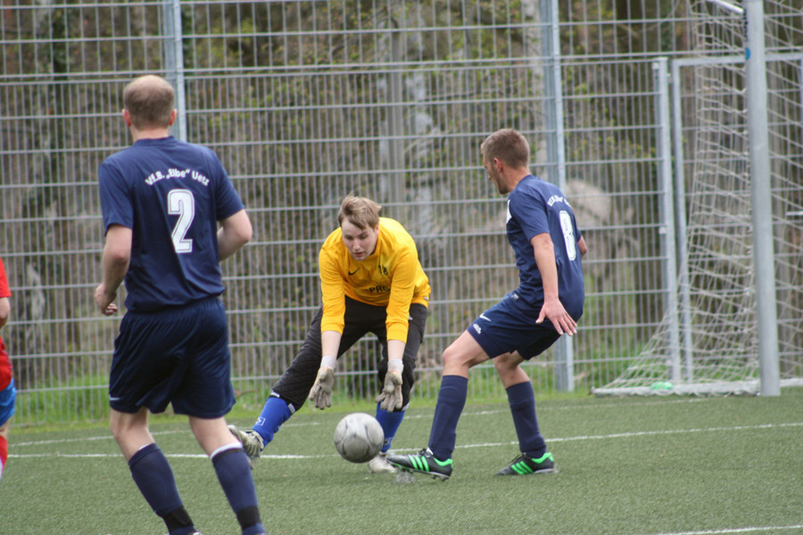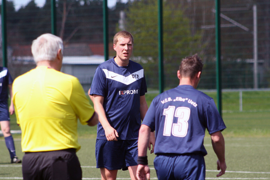 Die Schlussoffensive der Gastgeber wurde dann vorzeitig durch einen Platzverweis beendet. Als die Uetzer Reservebank das Spielgerät nicht sofort rausgab, ließ sich Benjamin Schallnat zu einer Tätlichkeit hinreißen und sah dafür zu Recht die rote Karte. In Überzahl hätten unsere Männer dann sogar noch nachlegen können. Doch erst verwehrte Schiri Syring David Mielke einen Strafstoß, als der frei vor Torwart Wieblitz im Sechszehner abgeräumt wurde und wenig später strich ein direkter Freistoß unseres Kapitäns nur knapp über die Torlatte. So blieb es am Ende beim mühsam erkämpften aber verdienten Auswärtssieg.