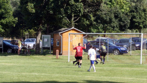 Im gewohnten 5-4-1-System wollte unsere Elf den spielstarken Gästen keine Räume für ihr Offensivspiel bieten und selbst über schnelle Konter Nadelstiche setzen. Doch schon nach 7. Minuten war dieser Plan durchkreuzt. Germanen-Torjäger Daniel Grabolla war mit Ball in den VfB-Strafraum gezogen und Marcel Böters brachte ihn unfair zu Fall. Schiri Tobias Hahne entschied völlig zu Recht auf Strafstoß für die Gäste und zeigte Marcel Böters obendrein noch die Rote Karte. Die gab es allerdings nicht für das Foul sondern die anschließende Meckerei unseres Verteidigers. Das Ivo Kumbartzky den fälligen Elfer auf den Parkplatz jagte, geriet angesichts dieser Dummheit fast zur Nebensache.