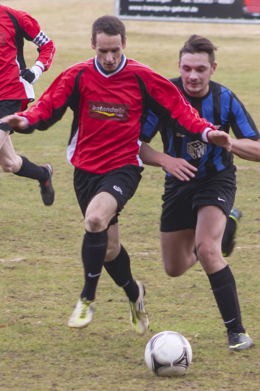 In der Folge hatte unsere Elf mehr vom Spiel, spielte aber in Tornähe zu ungenau. Dennoch ergaben sich immer wieder sehr gute Möglichkeiten. Aber David Mielke per Kopf, Christian Kroll und Torsten Lotsch jeweils nach Pfeiffer-Zuspiel ließen sogar beste Chancen ungenutzt oder scheiterten am gut reagierenden Keeper Dennis Roussiere. Mit einem unglücklichen Eigentor sorgten dann die Gäste selbst für die 2:1 Führung unserer Mannschaft. Dennis Roussiere hatte eine Kroll-Flanke sicher abgefangen, stieß bei der Landung allerdings mit Mitspieler Florian Stiller zusammen und die Kugel trudelte über die Torlinie.