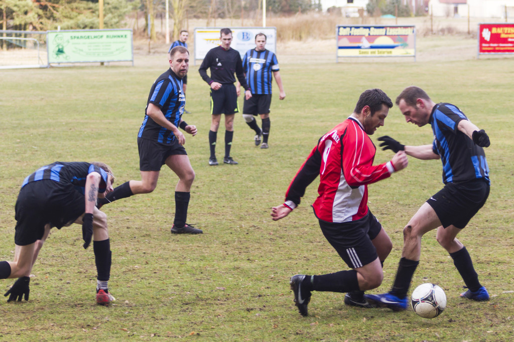 Trotz der widrigen Witterungsbedingungen brauchten beide Teams keine lange Aufwärmphase. Schon nach zwei Minuten kam Ronny Pfeiffer aus spitzem Winkel zum Abschluss, setzte den Ball aber neben das Tor. Auf der anderen Seite machte es der auffällige Chris Rosentreter besser. Sein abgefälschter Schuss erwischte Stephan Heinert auf dem falschen Fuß und landete im Netz. Aber schon mit dem nächsten Angriff stellte Christian Lust wieder alles auf null.