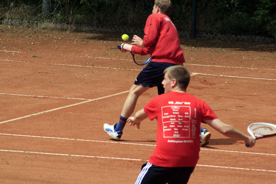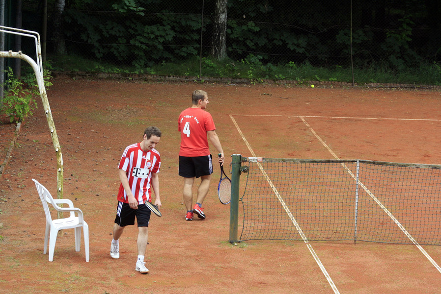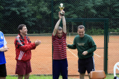 Das Finale bot am Ende des langen Turniertages dann nochmal ein echtes Kampfspiel. Der spielerischen Überlegenheit von Torsten hielt Jens Laufstärke und Kampf entgegen. Beide schenkten sich nichts und so kam es wie es kommen musste und das Finale ging in den Tiebreak. Nachdem Jens mehrere Matchbälle abwehren konnte und bei 6:6 im Tiebreak alles möglich schien, brachten dann doch 2 vermeidbare Fehler das 8:6 und den Turniersieg für „Brunsi“. Damit konnte er nach dem Sieg 2009 ein erfolgreiches Comeback hinlegen. Bleibt ihm und uns allen nur zu wünschen, dass ihm das nach einer „Seuchen-Saison“ im Vorjahr mit mehreren Verletzungen und einer Auszeit auch wieder auf dem Fußballplatz gelingt.