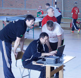 Gegen 14:30 Uhr flog dann endlich der 1. Ball über das Netz. In der Vorrundengruppe A konnten sich am Ende der spannenden Vorrunde, in der 7 Matches über 3 Sätze gingen, Stefan Reichert, Ralf Ruhnke, Marvin Wöge und Jens Ruhnke für das Achtelfinale qualifizieren. Letzterer behielt im entscheidenden Match gegen Ronald Lust nach verlorenem 1. Satz und 2:8-Rückstand im 2. Satz doch noch die Oberhand.
