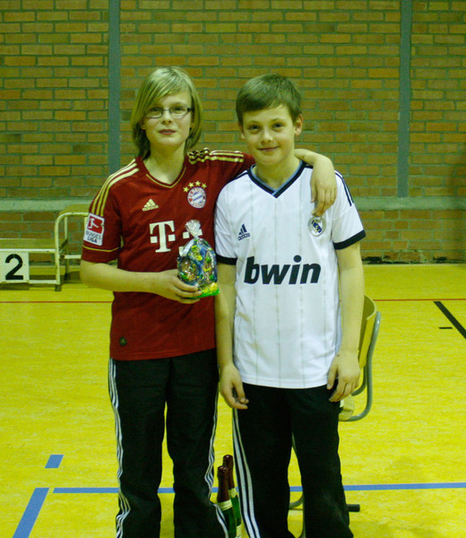 Im Anschluß konnte dann aber das mit Spannung erwartete Endspiel beginnen und es sollte sich ein gutes und würdiges Finale entwickeln, an dem auch die Zuschauer viel Spaß hatten. Beide Gegner zeigten immer wieder gekonnte Schläge und variable Angriffs- und Abwehraktionen. Nachdem Christian den 1. Satz mit 11:8 für sich entschied, konterte Stefan mit einem deutlichen 11:4 im 2. Satz. Alles konnte also bei „0“ beginnen. Trotz klarem Rückstand konnte sich Christian den 3. Satz sichern und ging wieder in Führung. Doch erneut schlug Stefan zurück und glich zum 2:2-Satzausgleich aus. Damit musste der 5. Satz die Entscheidung bringen. Hier zeigten beide noch mal ihr bestes Tischtennis und bis Mitte des Satzes war alles möglich. Dann konnte sich Christian aber absetzen und machte beim Stand von 10:5 alles klar und holte sich den Turniersieg und den damit verbundenen „Hauptpreis“, 2 Karten für das Bundesligaspiel Hannover 96 gegen VfB Stuttgart.