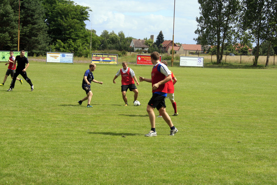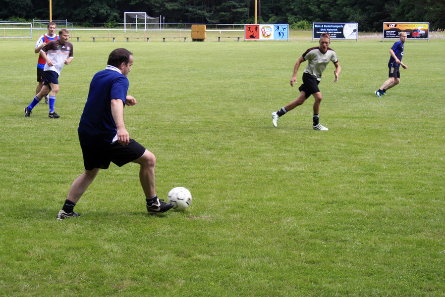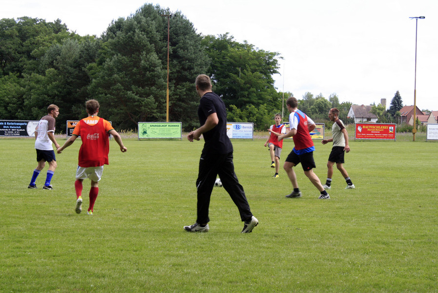 Mit einer doppelten Trainingseinheit starteten unsere Kicker am Wochenende in die Vorbereitung auf ihre zweite Kreisoberliga-Saison. Ohne einige Urlauber drehten am Freitag 15 Spieler die ersten Runden auf dem Uetzer Sportplatz. Beim anschließenden Waldlauf wurden dann nicht nur konditionelle Defizite sondern auch die Orientierungsprobleme einiger Fußballer sichtbar. Beides sollte aber bis zum Saisonstart behoben sein. Am Samstag ließen unsere Männer dann gleich die zweite, etwas ruhigere Einheit folgen. Eine große Runde durch die Gemeinde Uetz, mit Zwischenstation an der Schultreppe, war dabei schon die anstrengenste Übung. Mit sichtbar schweren Beinen versuchten sich einige Trainingteilnehmer dann sogar noch beim anschließenden Tennisturnier (Bericht folgt). Gegen die ausgeruhte Konkurrenz gab es da aber nicht viel zu holen. Dennoch hatten alle reichlich Spaß und ließen beim gemeinsamen Grillen das erste Trainingswochenende ausklingen. Am kommenden Samstag steht dann das erste Testspiel für unsere Männer auf dem Programm. In Schernebeck trifft unsere Mannschaft ab 14.00 Uhr auf die Kreisliga-Aufsteiger von der SG Freundschaft.