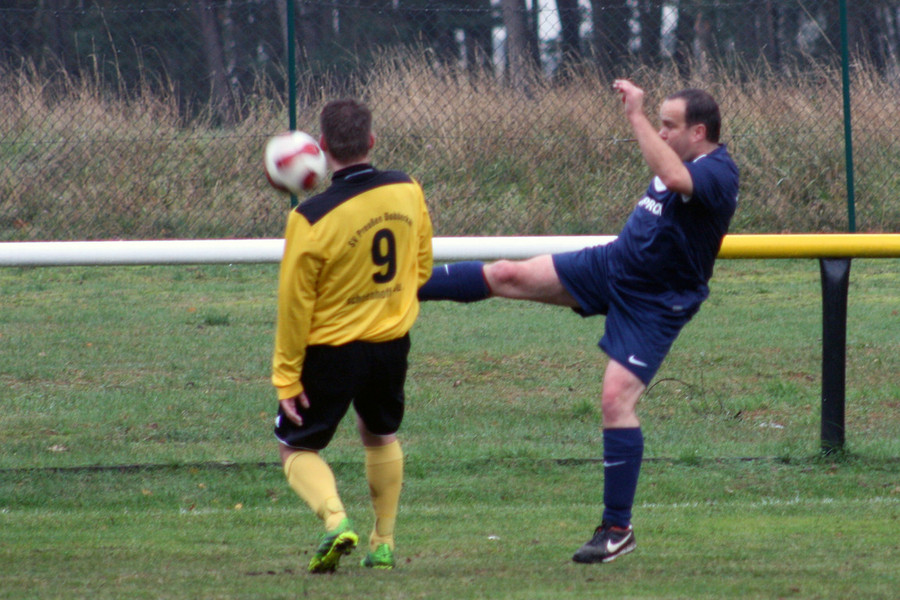 Mit einer sehr defensiven Ausrichtung wollten unsere Männer den Angriffswirbel der Preußen ausbremsen. Stefan Schmilas agierte als einzige Spitze und sollte mit seiner Schnelligkeit immer wieder für Gefahr sorgen. Zumindest defensiv ging diese Taktik lange auf. Unsere Elf verteidigte sehr diszipliniert und ließ die heimstarken Gastgeber zu keinen Tormöglichkeiten kommen. Trotz spielerischer Überlegenheit brauchten die Platzherren eine gute halbe Stunde bis zum ersten gefährlichen Torschuss. In der 34. Spielminute klatschte ein Distanzschuss an die Torlatte.