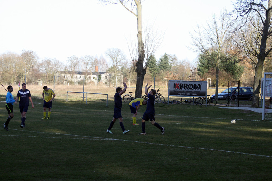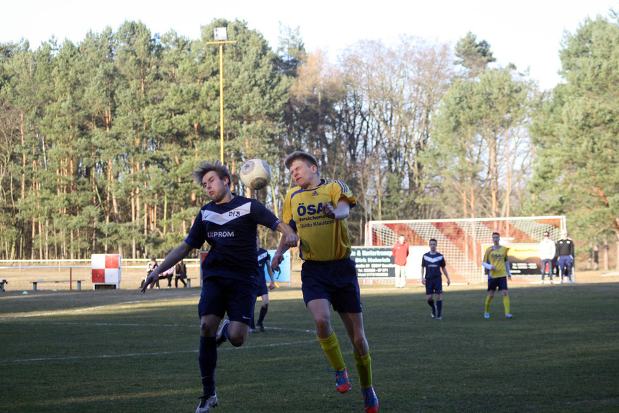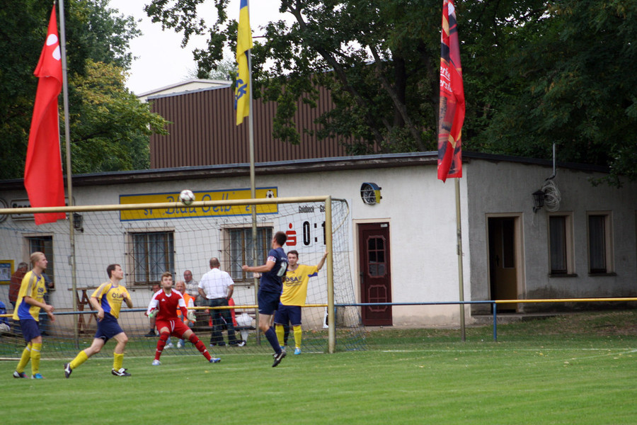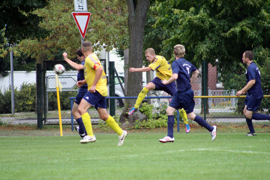 Die Gastgeber waren läuferisch und kämpferisch absolut gleichwertig, allerdings fehlte es in Strafraumnähe an Ideen und Durchschlagskraft. Unsere Jungs kamen dagegen immer wieder gefährlich in den gegnerischen Strafraum und hätten schon vor der Pause erhöhen müssen. So tanzte David Mielke nach einer halben Stunde die gesamte blau-gelbe Hintermannschaft aus, fand dann aber im gut reagierenden Keeper Buchholz seinen Meister. Kurz vor der Pause köpfte Michael Woop eine Kroll-Flanke knapp am Tor vorbei. Beim folgenden Eckball wurde unser Stürmer im Strafraum umgerissen, doch die Pfeife von Schiedsrichter Baron blieb trotz guter Sicht stumm.