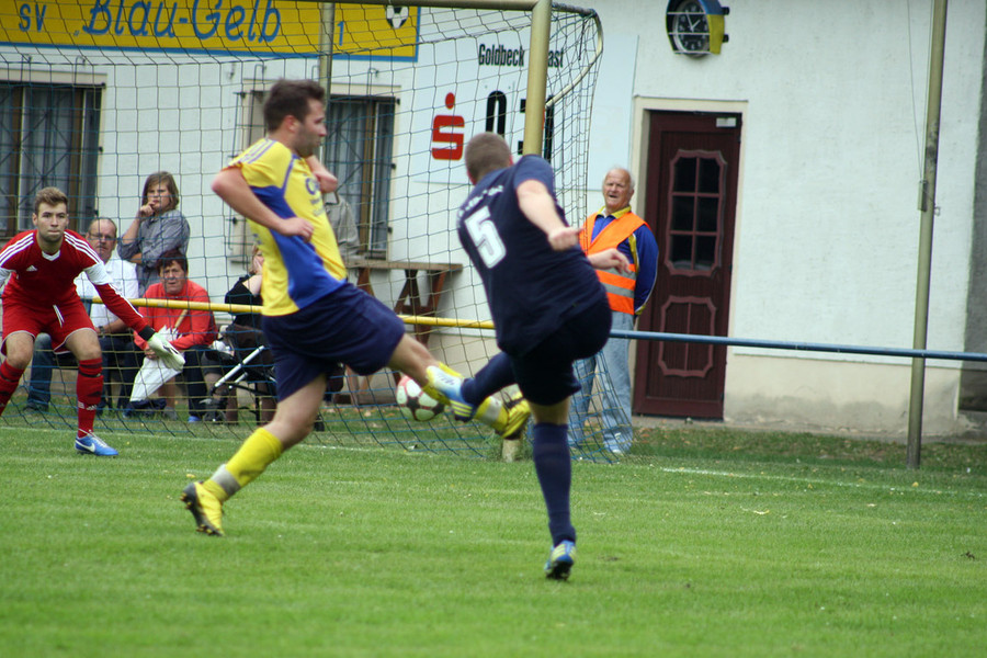 Dieser Treffer gab die nötige Sicherheit. Befreit spielte unsere Elf wie aus einem Guss und hatte nur wenig später durch David Mielke die nächste gute Tormöglichkeit. Ein Eigentor von Goldbecks Christoph Stiller brachte nach acht Minuten das verdiente 2:0. Christian Lust hatte aus halblinker Position hoch vor das Tor geflankt, der Verteidiger wollte vor dem einschussbereiten David Mielke klären, köpfte aber unhaltbar ein.