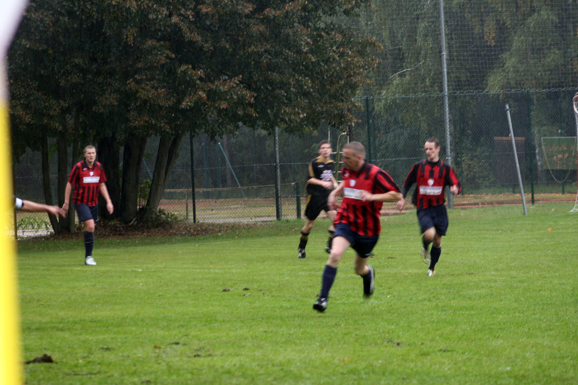 Im Uetzer Dauerregen entwickelte sich vom Anpfiff an ein abwechslungsreiches Fußballspiel. Beide Teams begannen schwungvoll, torgefährlich wurde es aber zunächst nicht. Besonders unserer Mannschaft merkte man an, dass sie sich nach den zuletzt schwachen Leistungen einiges vorgenommen hatte. Durch ihre hohe Laufbereitschaft erarbeiteten sich unsere Jungs ein leichtes Übergewicht. Trotz guter Kombinationen blieben klare Torchancen Mangelware. Nach einem schwach abgewehrten Eckball war es dann Christian Kroll der mit einem Schuss aus der zweiten Reihe dem Führungstreffer am nächsten kam. Sein leicht abgefälschter Schuss strich aber knapp über den rechten Torwinkel. Wenig später setzte Marco Lust einen Schuss über die Querlatte. Sonst fehlte es in Strafraumnähe an Ideen um die Klietzer Abwehr ernsthaft zu gefährden. Der auffällige Christian Kroll setzte sich auf den linken Flügel immer wieder gut in Szene, blieb im Abschluss aber oft zu harmlos. Einen Pfeiffer-Schuss aus der Drehung hielt der Germanen-Keeper im Nachfassen. Von den Gästen war in der Offensive wenig zu sehen. Marcel Böters hatte den Klietzer Torjäger Marcus Blümner mit wenigen Ausnahmen gut im Griff und auch die anderen Verteidiger agierten fast fehlerfrei. Lediglich bei zwei Eckbällen stimmte die Zuordnung nicht und die Germanen konnten unbedrängt köpfen. Der aufgerückte Liebero Schramm verfehlte mit seinem Kopfball nur ganz knapp den linken Torwinkel.