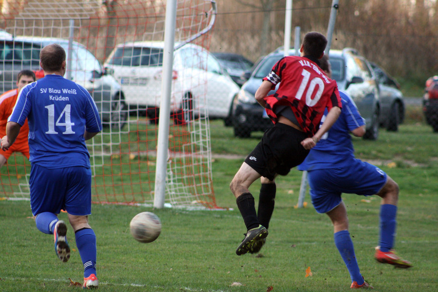Ohne Trainer Torsten Bruns und auch ohne Auswechselspieler war unsere Mannschaft die weite Reise nach Groß Garz angetreten. Trotz der fast aussichtslosen Ausgangslage begann unsere Elf die Partie mutig und engagiert. Stefan Schmilas verbuchte mit einem Distanzschuss auch die erste Tormöglichkeit der Begegnung (5. Minute). Die Gastgeber taten sich dagegen schwer und versuchten es immer wieder mit langen Bällen. Unsere Jungs verteidigten diszipliniert und spielten weiter unbekümmert nach vorn. Nach einem starken Solo bediente David Mielke im Strafraum den mitgelaufenen Stefan Schubert aber dessen Schuss war zu unplatziert und Krüdens Keeper konnte parieren (8.). Bei der anschließenden Ecke von Marco Lust verschätzte sich der Torhüter und das Leder sprang von der Latte auf die Torlinie und konnte nur mit Mühe geklärt werden (9.).