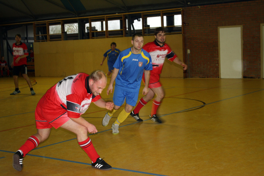 Tempo, Spannung, Tricks und jede Menge Tore – das Uetzer Neujahrsturnier war auch in diesem Jahr das traditionelle Fußballspektakel zum Jahresauftakt. Bei sieben teilnehmenden Mannschaften wurde die 29. Auflage im Modus Jeder-gegen-Jeden ausgetragen. Im Auftaktspiel zeigten die Männer um Rudi Matterne, dass sie nach den Turniersiegen 2012 und 2013 in diesem Jahr das Tripple perfekt machen wollten. Opfer war mit dem 1. FC Mallorca ein Dauerbrenner der letzten Neujahrsturniere. Wie in jedem Jahr verkaufte sich die junge Truppe recht ordentlich, konnte aber ihre zahlreichen Torchancen nicht nutzen. Danach triumphierte Uetz ebenfalls mit 4:2 im Duell zweier Titelanwärter über die Bautischlerei Heinert. Der SV Mahlwinkel startete bei seiner Premiere mit einem achtbaren Remis gegen die Vorjahresfinalisten aus Kehnert. Als letztes griffen dann die Kicker vom Spargelhof Ruhnke in das Turniergeschehen ein. Im ersten Spitzenspiel des Tages bezwangen die Spargelbauern Rudi`s Team knapp mit 2:1. Damit schossen sich die Männer um Jens Ruhnke selbst in die Favoritenrolle.