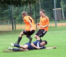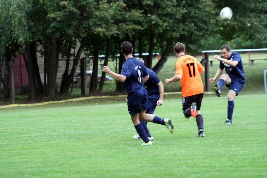 Am 4. Spieltag der Fußball-Kreisoberliga besiegte unsere Mannschaft den bis dahin verlustpunktfreien Rossauer SV mit 3:1. Besonders in der ersten Spielhälfte zeigten unsere Jungs eine starke Leistung und gingen durch die Treffer von Ronny Pfeifer und Michael Woop verdient mit 2:0 in Führung. Nach dem Anschlusstreffer der Gäste erlebten die etwa 50 Zuschauer einen spannenden zweiten Abschnitt. Mit seinem zweiten Treffer stellte Ronny Pfeiffer in der Schlussminute den ersten Heimsieg für unsere Mannschaft sicher.