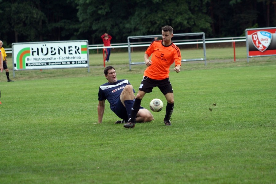 In den letzten zehn Minuten gingen die Gäste dann volles Risiko und erhöhten so noch einmal den Druck auf unsere Hintermannschaft. Aufregung und Hektik dann in 82. Minute. Nach einem weiten Ball von Torhüter Roger in den Uetzer Sechzehner, köpfte Robert Vorlopp den Ball über Stephan Heinert ins Tor. Aber auch diesem Treffer verwehrte das Schiedsrichter-Team die Anerkennung. Sowohl Schiri Socha als auch sein Assistent hatten vorher ein Foul des Angreifers gesehen. Durchatmen bei unseren Jungs, verständlicher Ärger bei den Männern in Orange. Mit Wut im Bauch warfen sich die Gäste in die letzten Minuten, kamen aber zu keiner weiteren Großchance. Im Gegenteil. Kurz vor dem Schlusspfiff sorgte Ronny Pfeiffer mit dem 3:1 für die endgültige Entscheidung (90.).