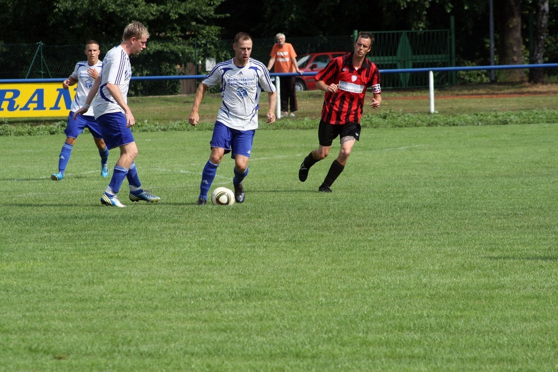 Nur wenige Minuten nach diesem Treffer gelang den Gastgebern sogar die Führung. In einer umkämpften Situation vor dem VfB-Tor klärte Torsten Lotsch zur Ecke, doch Schiedsrichter Thomas Görges hatte in dieser Szene ein Foulspiel an Rapcinski gesehen und entschied auf Strafstoß. Christian Englisch trat und scheiterte mit seinem schwach getretenen Elfmeter, konnte aber den Nachschuss sicher verwerten. Mit dieser Führung im Rücken kontrollierte der Landesklasse-Vertreter in der Folge das Spielgeschehen. Unsere Elf hielt jedoch mit sehr viel Leidenschaft dagegen und versuchte sich immer wieder Möglichkeiten heraus zu spielen.