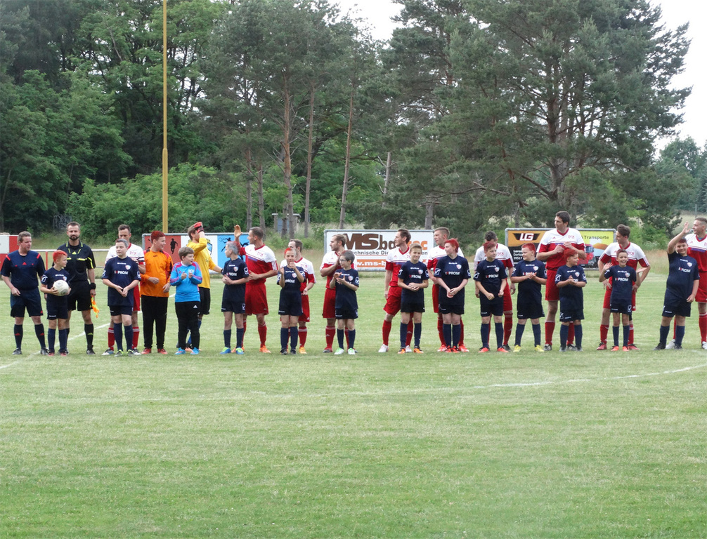 Allein die Gäste vom Kreveser SV hatten keine Lust auf ein solches Fußballfest. Trotz mehrfacher Aufforderung durch das Schiedsrichtergespann, verweigerten sie einen pünktlichen Anpfiff. Erst als auch der letzte KSV-Akteur endlich in Uetz angekommen war, konnte das Spiel mit 30-minütiger Verspätung beginnen. Nach zerfahrenem Beginn übernahm unsere Elf dann zunehmend die Spielkontrolle. Mehr als ein Müller-Kopfball und ein abgewehrter Schmilas-Schuss sprang dabei aber nicht heraus. Die Gäste wagten sich nur selten in die Offensive, kamen allerdings nach einem Eckball und einem Freistoß gefährlich in Tornähe.