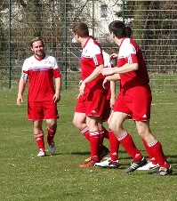 Nach dem Seitenwechsel erhöhten die Kickers den Einsatz und drängten auf den schnellen Ausgleich. Die erste Torchance hatte aber unsere Mannschaft. Nach einem Foul an Ronny Pfeiffer servierte Stefan Schmilas den fälligen Freistoß scharf in den Strafraum, doch Pierre Dobberkau erwischte das Leder nicht voll und der Ball ging über das Gehäuse.