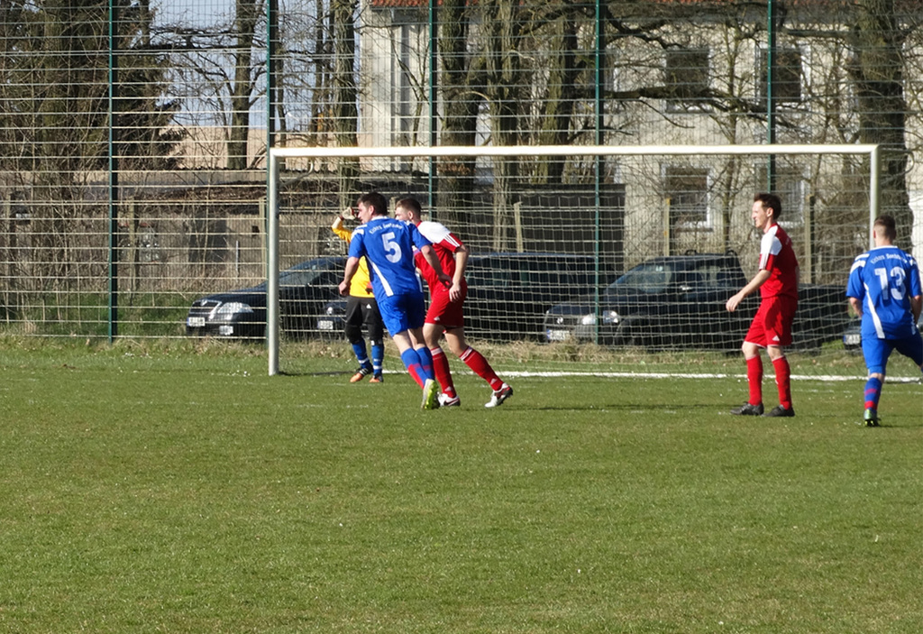 Beide Teams mussten einige Stammkräfte ersetzen und so entwickelte sich von Beginn an eine Partie auf überschaubaren Niveau. Zahlreiche Fehlpässe verhinderten einen ordentlichen Spielaufbau auf beiden Seiten. So war vor allem das Mittelfeld hart umkämpft. In den Strafräumen passierte dagegen wenig. Nach einem abgewehrten Schuss von Stefan Schmilas, verbuchte Benjamin Müller mit einem Distanzschuss die erste Torannäherung. Auf der anderen Seite kam Philipp Arndt per Kopfball zum ersten Abschluss für die Platzherren. Praktisch aus dem Nichts hieß es plötzlich 1:0 für den VfB. Ronny Pfeiffer und Stefan Schmilas waren mit ihrem Versuch sich in den Strafraum zu kombinieren gescheitert. Der Ball kam über einen Rückpass zu Torhüter Wieblitz. Dessen Spieleröffnung ging dann völlig daneben und landete direkt bei Stefan Schmilas. Und unser Torjäger ließ sich diese Chance nicht nehmen und markierte mit einem Schuss durch die Beine des Keepers seinen 13. Saisontreffer (17.).