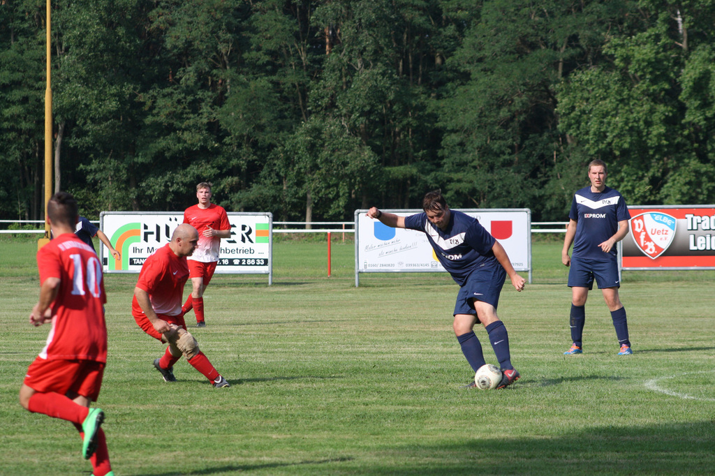 Die Aufsteiger aus Walsleben hatten auch vor ihrem zweiten Auswärtsspiel enorme Personalsorgen. Nachdem sie das Gastspiel in Möringen am ersten Spieltag ganz absagen mussten, traten sie in Uetz lediglich mit 10 Akteuren an. Etwas besser sah es bei unserer Elf aus. Mit Nigel Kempchen, Marc Meier und Pierre Dobberkau kehrten zwei Leistungsträger in die Anfangsformation zurück. Julian Wittkowski, Mathias Neumann und Marco Lust nahmen dafür auf der Bank Platz.
