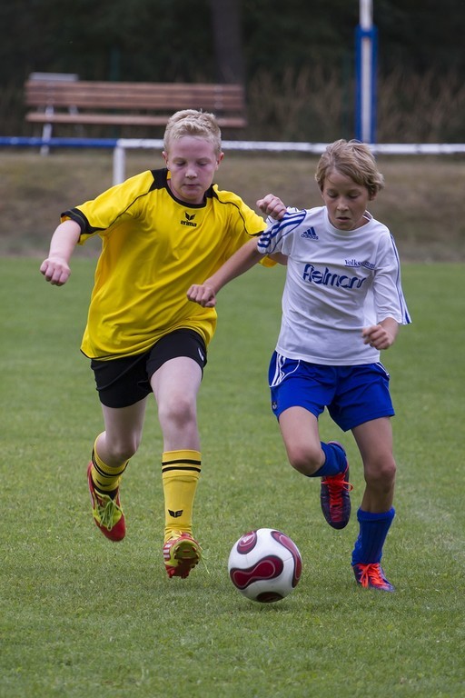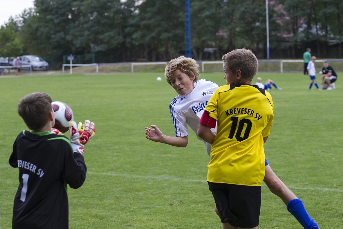 Zum Auftakt in der neuen Altersklasse erkämpften unsere Jungs ein 4:4 gegen den Kreveser SV. Da die Gäste zwei ältere Spieler im Kader hatten, gab es trotzdem volle 3 Punkte für unsere Mannschaft. Dabei bestimmten unsere Jungs vom Anpfiff weg das Spielgeschehen. Nach einem schönen Spielzug brachte Fabian Garlipp unsere Farben bereits in der 5. Minute in Führung. Die Gäste hatten spielerisch nur wenig entgegenzusetzen, nutzten dann aber einen Eckball zum Ausgleich. Unsere Mannschaft blieb weiter spielbestimmend und ging durch Richard Garlipp erneut in Führung. Kurz vor der Pause erhöhte Fabian Garlipp sogar auf 3:1.