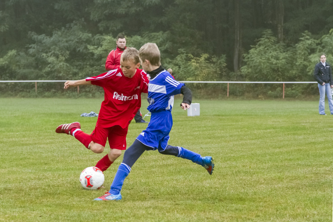 In einer ausgeglichenen Partie lieferten sich beide Mannschaften einen tollen Schlagabtausch mit zahlreichen Tormöglichkeiten auf beiden Seiten. Da auch beste Einschussmöglichkeiten ungenutzt blieben, ging es torlos in die Pause. Nach dem Seitenwechsel sorgte dann Justin Gedge für die etwas überraschende Gästeführung. Die Spielgemeinschaft drängte danach mit Macht auf den Ausgleich, hatte aber weiterhin kein Glück im Abschluss. Angefeuert von den zahlreichen Zuschauern lieferten unsere kleinen Kicker eine tolle Schlussoffensive und wurden kurz vor dem Abpfiff für ihren unermüdlichen Einsatz belohnt. Bennedikt Falk zog aus der zweiten Reihe ab und sein leicht abgefälschter Schuss schlug unhaltbar im Uchtspringer Kasten ein. Kurz darauf war Schluss und unsere Mannschaft konnte ihr erstes Erfolgserlebnis in der E-Jugend bejubeln. Weiter so Kidds!!!