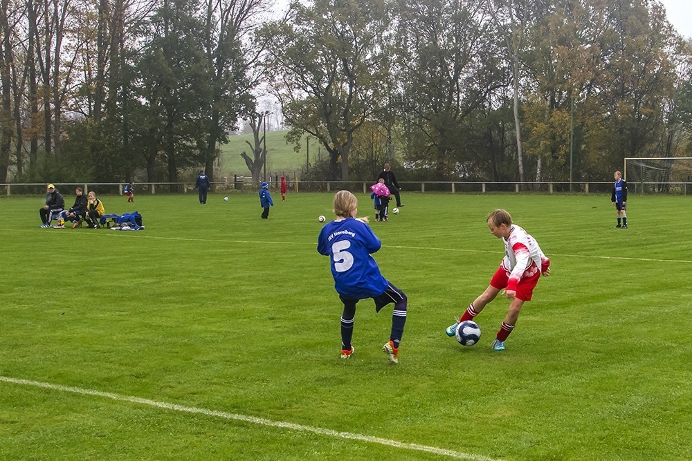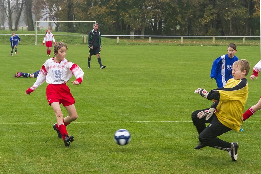 Am 7. Spieltag erkämpfte sich unsere D-Jugend in Havelberg ihren dritten Saison-Sieg. In einer sehr konzentrierten und engagierten Anfangsphase erspielte sich unsere Mannschaft ein leichtes Übergewicht und kam zu ersten guten Tormöglichkeiten. Der Gastgeber hielt jedoch kämpferisch gut dagegen und kamen ihrerseits zu einigen Torchancen. Allerdings hatten beide Mannschaften eine hohe Fehlerquote in ihrem Spielaufbau, so dass der Spielfluss immer wieder unterbrochen wurde. Der vom Dauerregen aufgeweichte Platz machte es den Kindern allerdings auch sehr schwer. Nach etwa 20 Minuten schloss Richard Garlipp dann ein ordentlichen Spielzug mit dem 1:0 ab. Sein Torschuss landete unhaltbar in der unteren rechten Torecke. Mit dieser knappen Führung ging es dann auch in die Halbzeitpause.