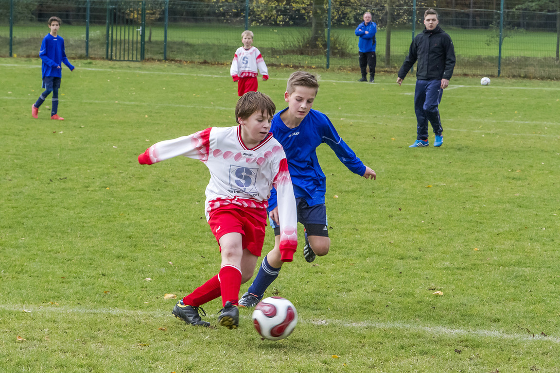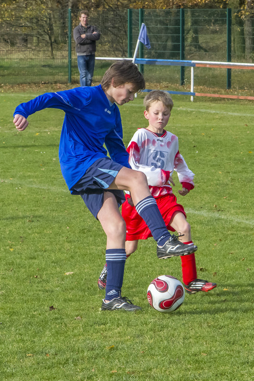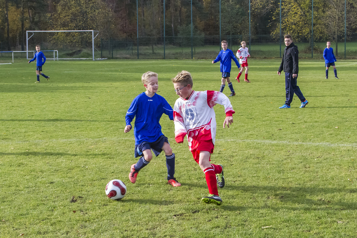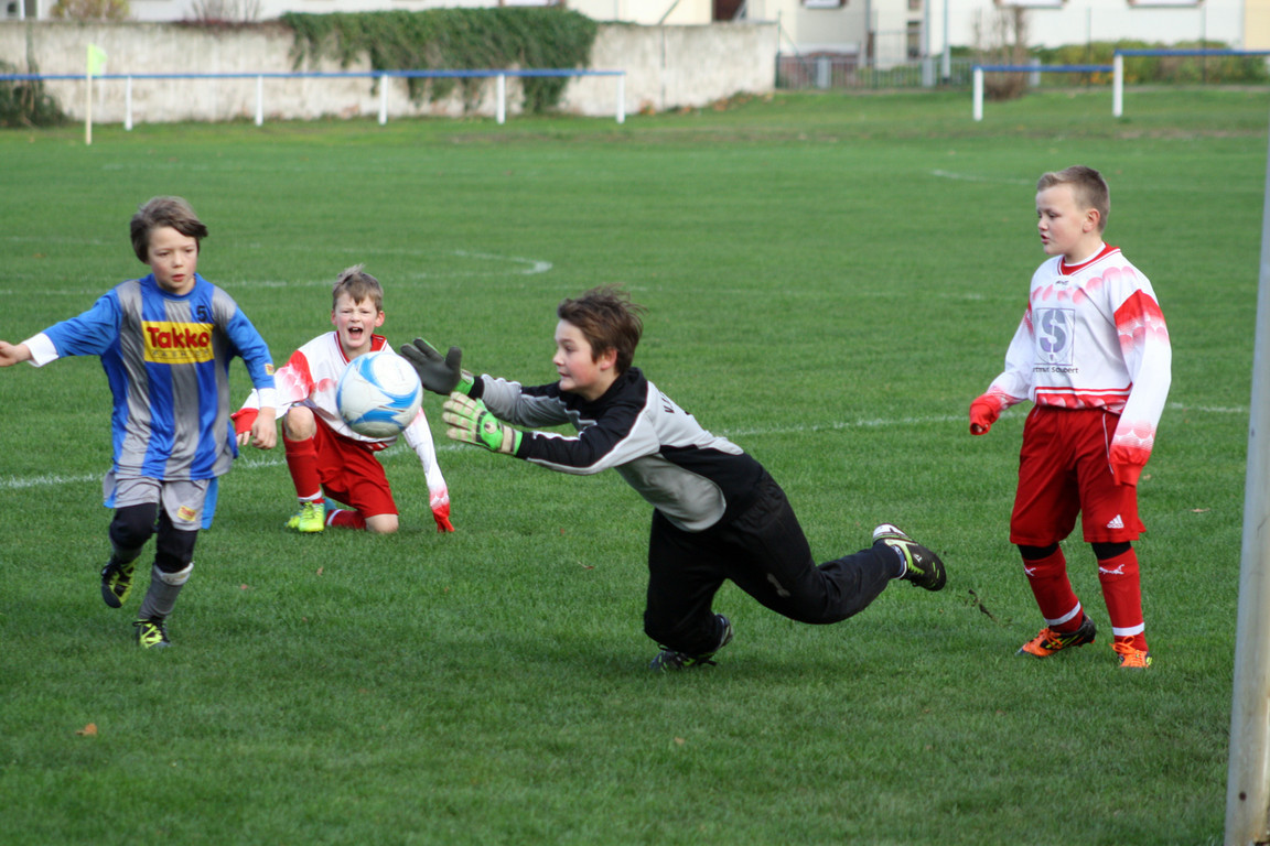 Nach dem Seitenwechsel waren dann wieder unsere Kinder am Drücken. Leider blieben in der Anfangsphase zwei gute Tormöglichkeiten ungenutzt und die Gastgeber konnten sich allmählich befreien. Die gefährlicheren Angriffe gingen in dieser Phase von der Heimmannschaft aus. Erst musste Lucas Vogt auf der Torlinie retten, dann hatte unser Keeper Glück, als eine Volleyabnahme knapp am rechten Pfosten vorbei flog. 10 Minuten vor dem Schlusspfiff gelang den kleinen Germanen dann mit dem 5:2 die Entscheidung. Wieder konnten unsere Kidds einen Eckball nicht entscheidend abwehren und aus dem anschließenden Gewühl heraus landete die Kugel irgendwie im Netz. In den verbleibenden Minuten fehlte dem Heinrich-Team dann die Kraft, das Match noch einmal zu drehen. Auf der anderen Seite hatten die Germanen noch gute Möglichkeiten das Ergebnis auszubauen. Nach einem Pfostentreffer vereitelte Lucas Vogt auch die letzte große Möglichkeit und verhinderte damit eine höhere Niederlage.