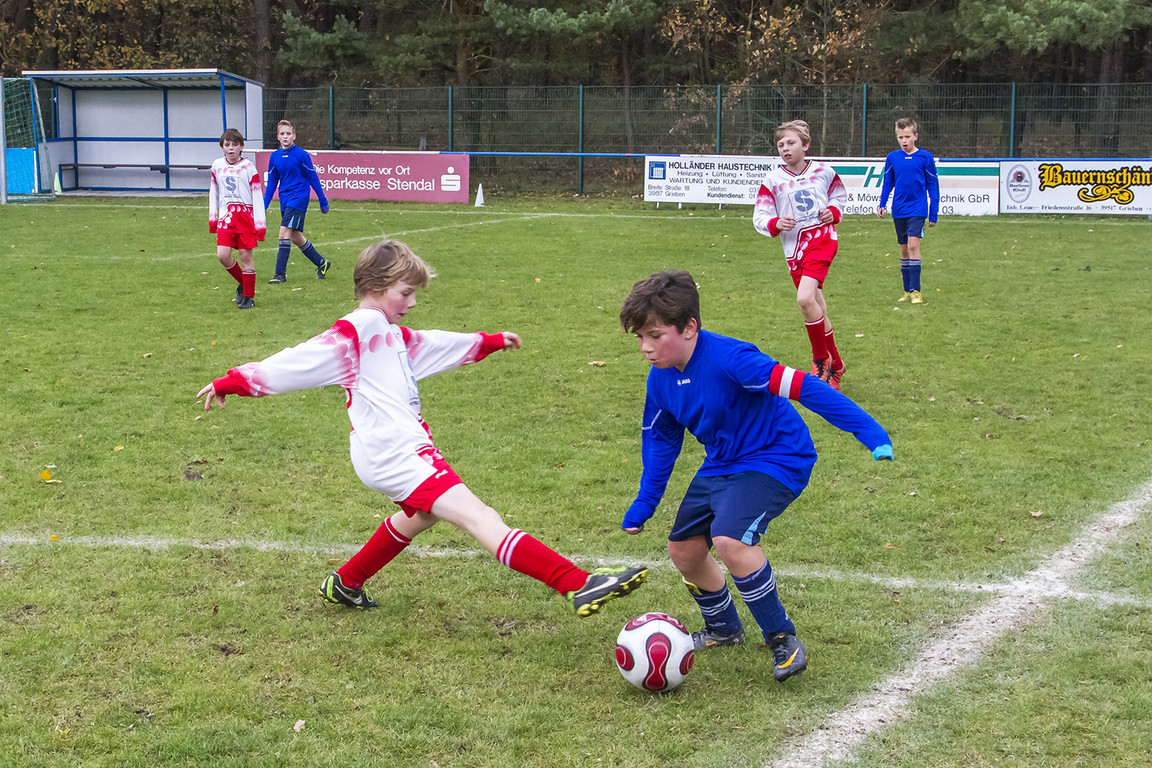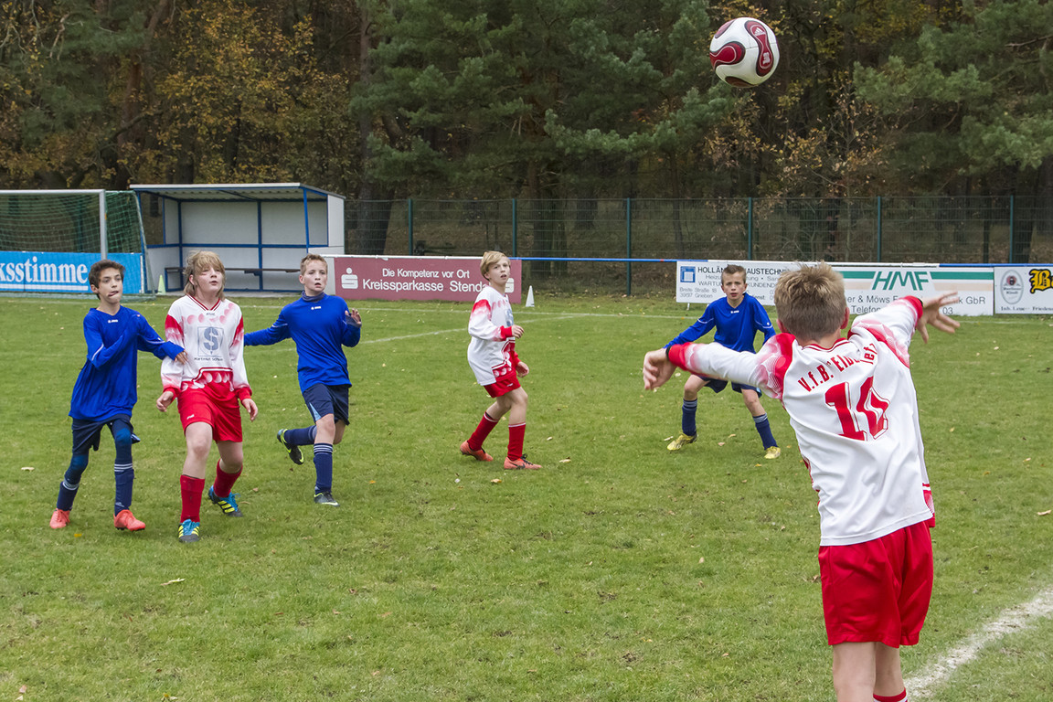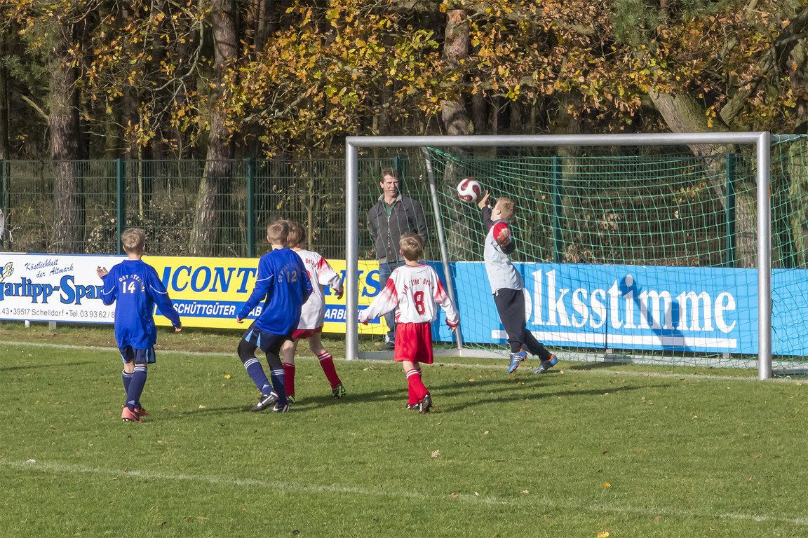 Am 8. Spieltag stand für unsere E-Junioren das Derby bei Germania Tangerhütte auf dem Spielplan. Nach der deutlichen Pokal-Niederlage (0:7) hatte sich das Heinrich-Team einiges vorgenommen und begann sehr engagiert. In den ersten Minuten erspielten sich unsere Jungs ein leichtes Übergewicht und gingen nicht unverdient nach 6 Minuten in Führung. Nach einem Eckball von Darian Brandt stand Joel Lindenthal goldrichtig und schob zum 1:0 ein. Die Antwort der Germanen ließ allerdings nicht lange auf sich warten. In der 8. Spielminute schlug ein direkter Freistoß zum Ausgleich ein. Nach diesem Treffer erspielten sich die Gastgeber leichte Vorteile und kamen zu mehreren hochkarätigen Tormöglichkeiten, die allerdings ungenutzt blieben. Nach einer knappen Viertelstunde war es dann erneut ein Freistoß den die Platzherren zum Führungstreffer nutzten. Von der Unterkante der Torlatte landete das Spielgerät unhaltbar im Netz. Aber unsere Kinder bewiesen an diesen Vormittag eine tolle Moral und kämpften sich zurück ins Spiel. Ein Konter brachte dann wenig später den verdienten Ausgleich. Joel Lindenthal nahm einen langen Ball gut mit und schloss aus 10 Metern mutig ab. Durch die Beine des Torhüters landete die Kugel zum umjubelten 2:2 im Tor. Aber wieder ließ die Tangerhütter Antwort nicht lange auf sich warten. Eine direkte Ecke von der rechten Seite brachte den Favoriten erneut in Führung. Die Gastgeber hatten in dieser Phase mehrere gefährliche Offensivaktionen aber SG-Torhüter Lucas Vogt hielt seine Mannschaft im Spiel. Kurz vor der Pause war aber auch er chancenlos. Bei einem Eckball stimmte die Zuordnung nicht und ein Germania-Spieler konnte völlig unbedrängt zum 4:2 vollenden.